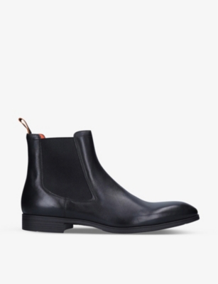 Santoni leather Chelsea boots100% leatherSlips onAlmond toe, elasticated side gussets, hand-polished upper, pull tab to the back, orange liningSpecialist leather cleanMade in ItalyUpper: 100% leatherLining: 100% leatherSole: 100% rubber