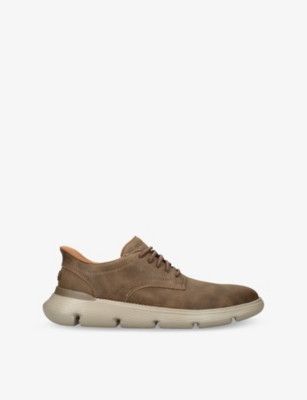 Skechers leather low-top trainers100% leatherSlips onRound toe, laces, logo embossment to tongue, branded tab, chunky soleSpecialist leather cleanUpper: 100% leatherLining: 100% polyesterSole: 100% rubber