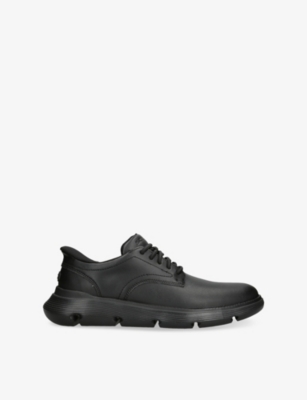 Skechers leather shoes100% leatherOxford style design, easy no-tie lace system, Air-Cooled Memory Foam® cushioned comfort insole, Heel Pillow™ holds your foot securely in placeSpecialist leather cleanUpper: 100% leatherLining: 100% textileSole: 100% synthetic