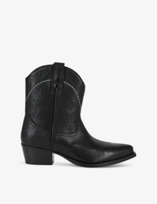 Mens The Kooples Embroidered Pointed-Toe Leather Western Boots