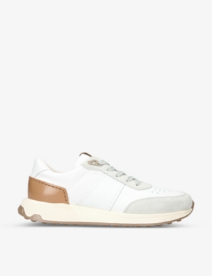 Tod’s leather low-top trainers100% leatherLace-up fasteningRound toe, low-top silhouette, panelled upper, logo patch to the tongue, chunky sole, pebbled outsoleSpecialist leather cleanMade in ItalyUpper: 100% leatherLining: 100% textileSole: 100% rubber