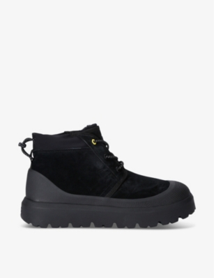 UGG suede chukka boots100% suedeLace-up fasteningClosed round toe, logo-debossed at side heel, heel tab, tonal stitching, chunky contrast sole, shearling linedSpecialist leather cleanUpper: 100% suedeLining: 100% shearlingSole: 100% EVA