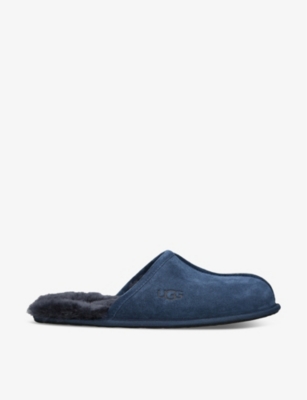 UGG suede slippers100% leatherSlips onRound closed toe, raised seam at front, shearling lined, branded insoleSpecialist leather cleanUpper: 100% leatherLining: 100% recycled polyester; 80% wool, 20% lyocellSole: 100% rubberBlue dark is equivalent to UGG shade Deep Ocean