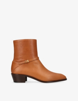 Valentino Garavani leather ankle boots100% leatherZip fasteningAnkle rise, closed round toe, ankle buckle detail, block heelHeel height 1.8inSpecialist leather cleanUpper: 100% leatherLining: 100% leatherSole: 100% synthetic