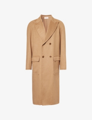 Valentino wool coat100% camel wool; lining 75% acetate, 25% silkExposed button fastenings at frontRegular fit, double-breasted, peak lapels dropped shoulders, long sleeves, branded buttons, two side flap pockets, belted back, central rear vent, fully linedSpecialist dry cleanMade in ItalySize UK 40: length 48in /122cm, chest 42in / 107cmModel is 6ft 2in/1.88m and wears a size UK 40Heavyweight, non-stretch