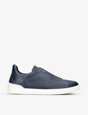 Ermenegildo Zegna leather low-top trainers100% leatherSlips onClosed round toe, lightweight, slip-on, triple-crossing elastic laces, heel pull tab, brand-embossed tongue, SECONDSKIN for soft feel and comfortWipe with a clean, dry clothMade in ItalyUpper: 100% leatherLining: 100% leatherSole: 100% synthetic