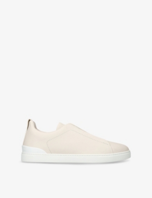 Ermenegildo Zegna leather low-top trainers100% leatherSlips onTriple crossing-elastic laces, closed round toe, contrast sole, lightweight sole, removable footbed, brand-embossed tongueSpecialist leather cleanUpper: 100% suedeLining: 100% leatherSole: 100% rubber