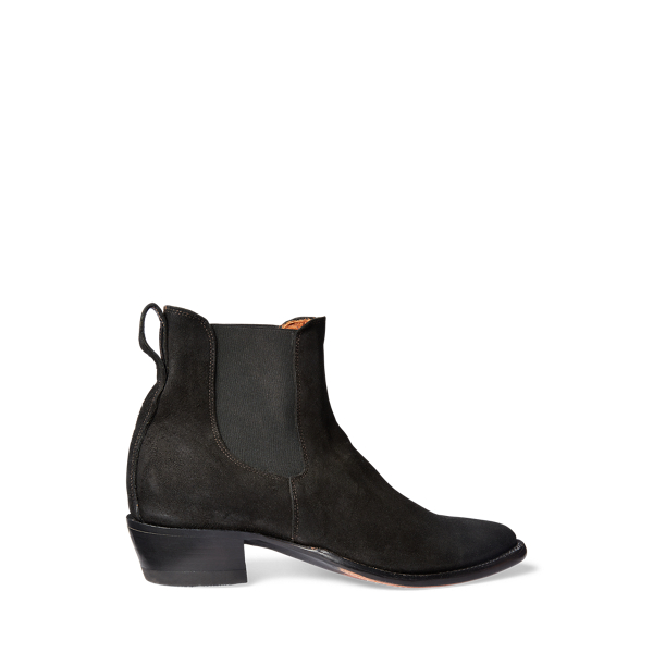 Benchmade in a Texas workshop that has been constructing boots for more than 160 years on vintage shoe lasts. Made with roughout suede from the USA. Hand-fitted, vegetable-tanned, 50 mm heel. Bark-tanned leather outsole.