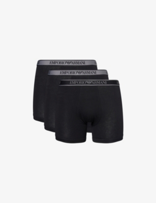 Emporio Armani pack of three stretch-cotton boxers95% cotton, 5% elastane; contrast 85% polyester, 15% elastane; lining 95% cotton, 5% elastaneMid-rise, branded elasticated waistband, supportive panel at frontMachine wash at 30°CModel is 6ft 2in/1.88m and wears a size mediumLightweight, stretchyFor hygiene reasons, we are unable to exchange or refund this product, unless faulty.