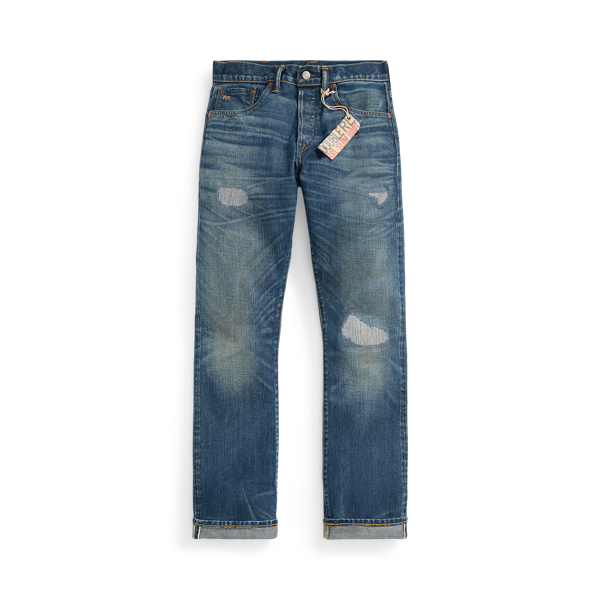 Slim-fitting bootcut jeans made in the USA from Ridgway Twill, Double RL’s signature left-hand-twill denim. 13.7 oz. selvedge fabric is shuttle-woven in Japan. Turquoise cast inspired by 1950s American denim. Button-fly construction. Repaired. Sanforized to minimise shrinkage.