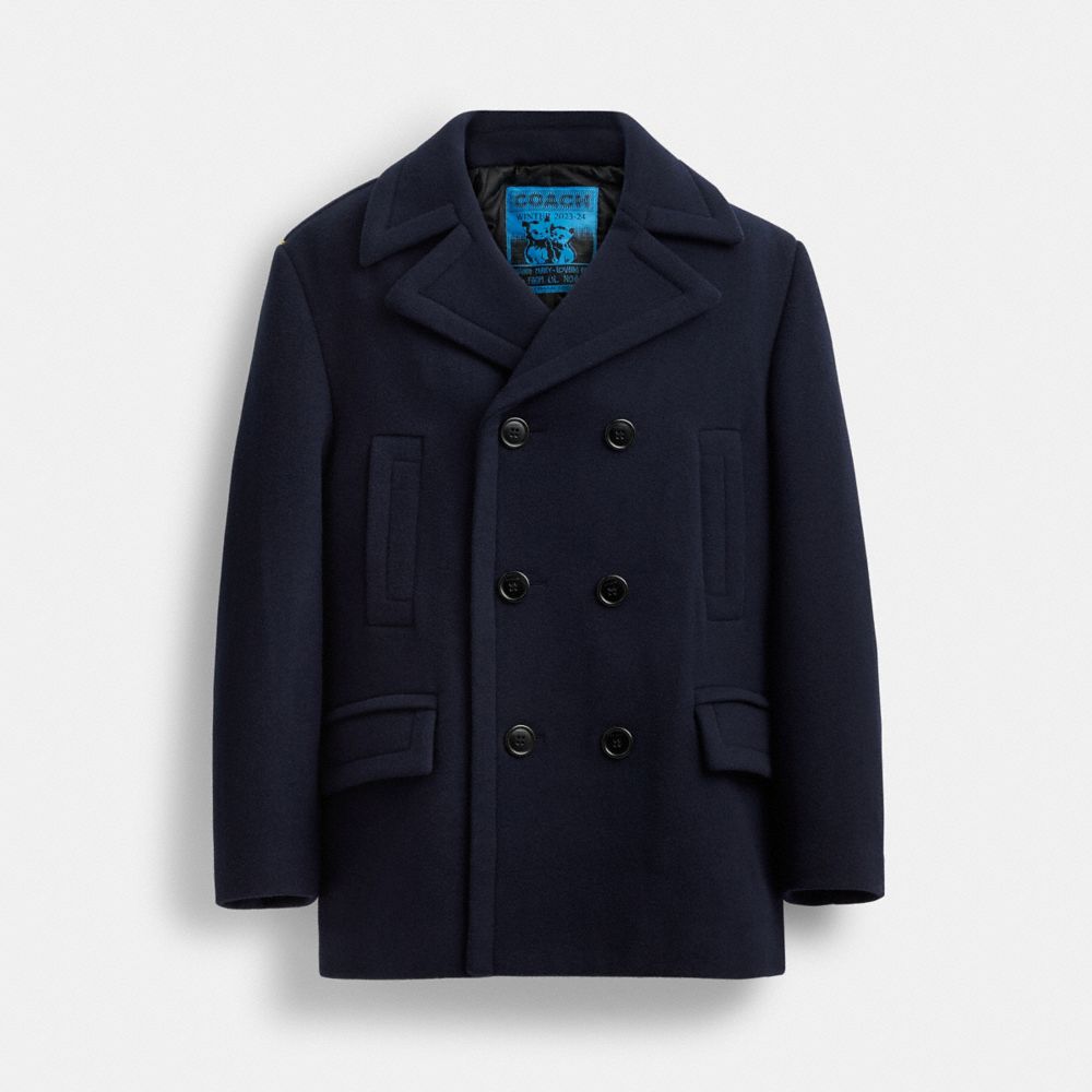 Presenting the Lil Nas X Drop an edit designed by Coach and curated by Coach Ambassador Lil Nas X celebrating his unique and expressive approach to style. An updated take on an iconic naval silhouette this sleek double-breasted coat is crafted of a warm wool-blend and features a traditional pointed collar along with a mix of slip and flap pockets. COACH?? Men’s The Lil Nas X Drop Wool Coat in Blue, Size X-Large 58% Polyester 42% Viscose Lining